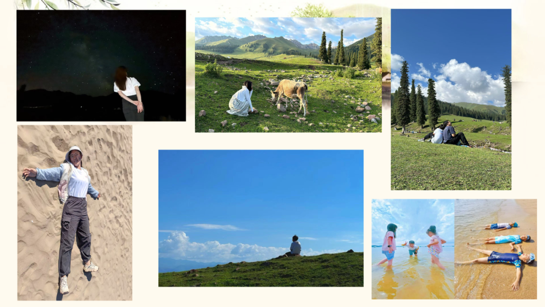 圖片中有一對父子倆,他們倆曾經有很深的矛盾,兒子老覺得爸爸做得不夠好,老批評他,那天他們兩個人坐在草原上,安安靜靜地聊了三個小時,回來以後都很開心,我們想把時光還給孩子,無論是在草原湖泊 還是在海邊沙漠,我們都希望孩子們,可以沉浸式的享受自己的生活。