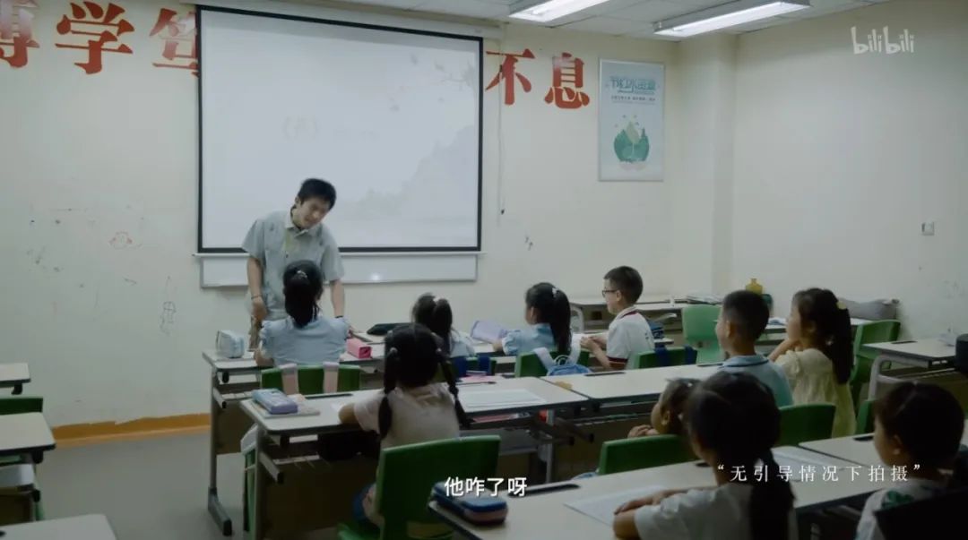在上課這場戲中,鏡頭記錄了孩子們的真實反應