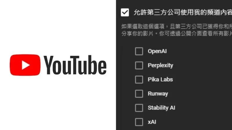 YouTube 在上個月也加入了類似的新功能:YouTuber 自行決定 AI 是否能抓取自己的視頻內容,甚至可以選擇授權的 AI 公司(當然也可以全選)。不過目前 YouTube 還沒有給出授權費用的政策。