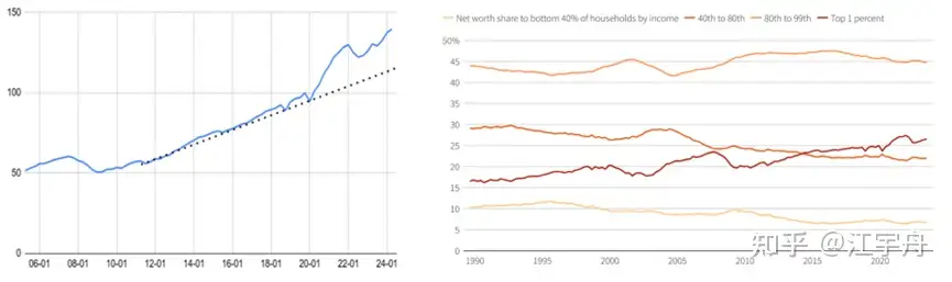 家庭資產號稱這幾年漲了40%,結果一對還是聯儲的數據,超過3/4的家庭淨資產不足10萬美元,較2019年疫情時期僅增長了4%,剔除通脹以後就是負增長。