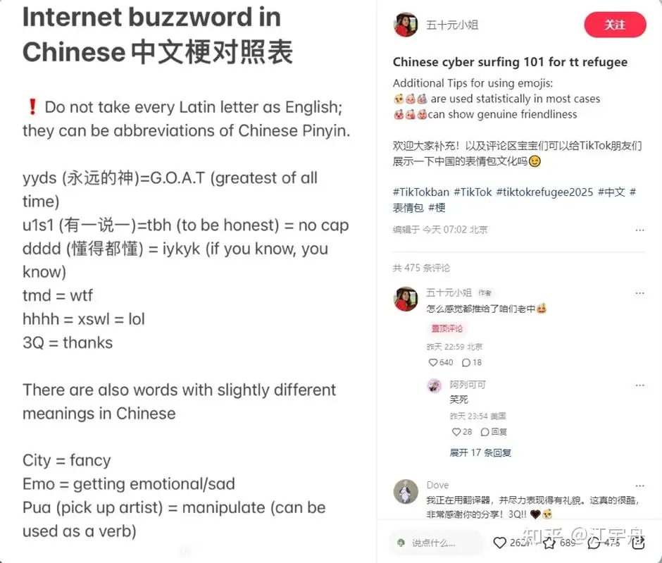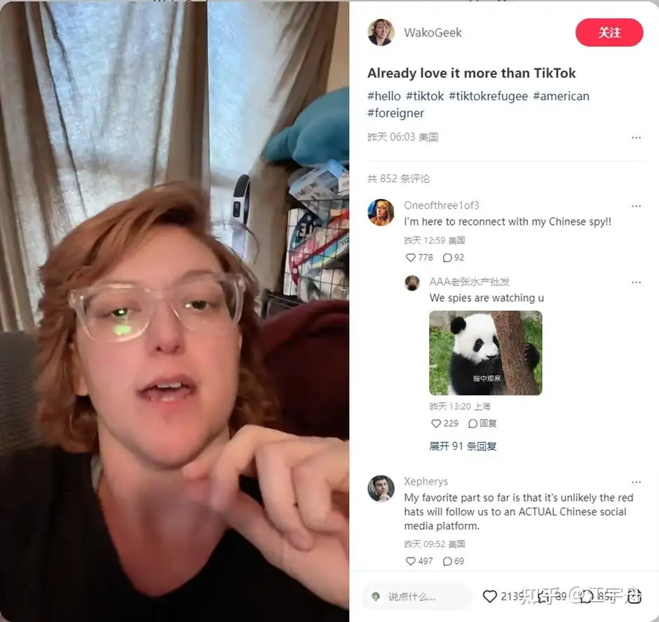週一的小紅書就這麼爆了,大羣美國網友的瞬間湧入,和隨後的顆粒度對齊,讓它被戲稱為是新時代的“洋悟運動”。