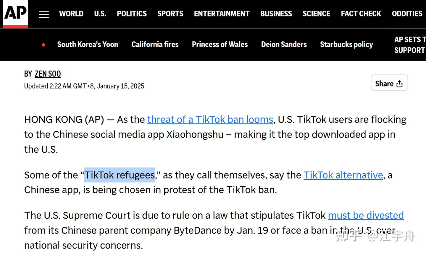 1^US TikTok users flock to Chinese app Xiaohongshu in protest with TikTok ban looming https://apnews.com/article/china-xiaohongshu-tiktok-ban-refugees-c7f440803128ef50f0ade44d16068f01