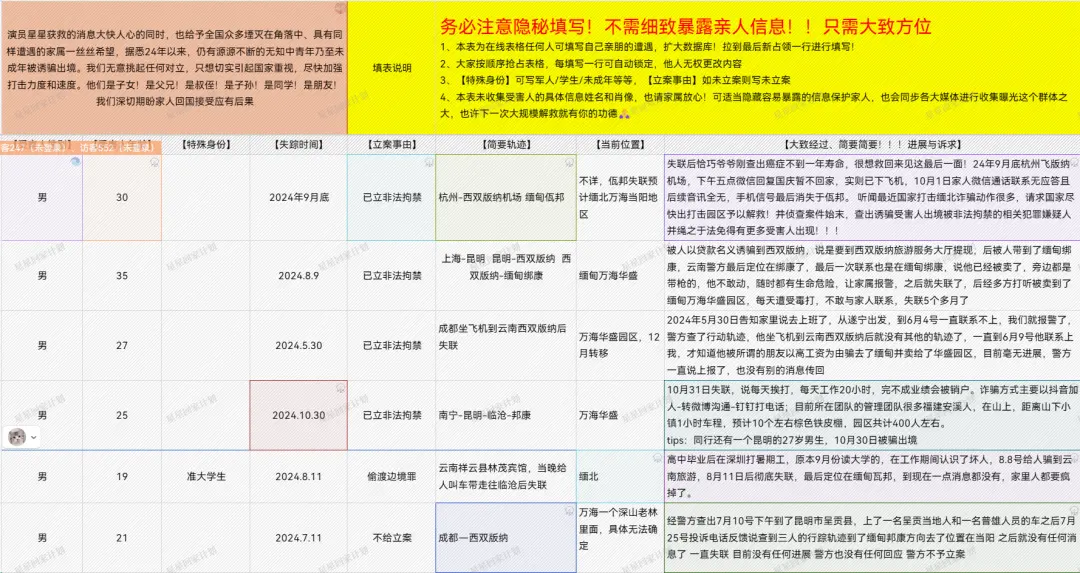 王星事件後,網絡上出現了一份緬甸電詐失蹤者文檔,許多受害者的親屬,在文檔裏記錄、分享了親友進入電詐園區的過程。