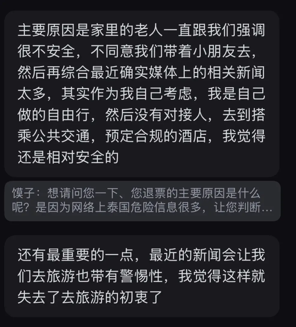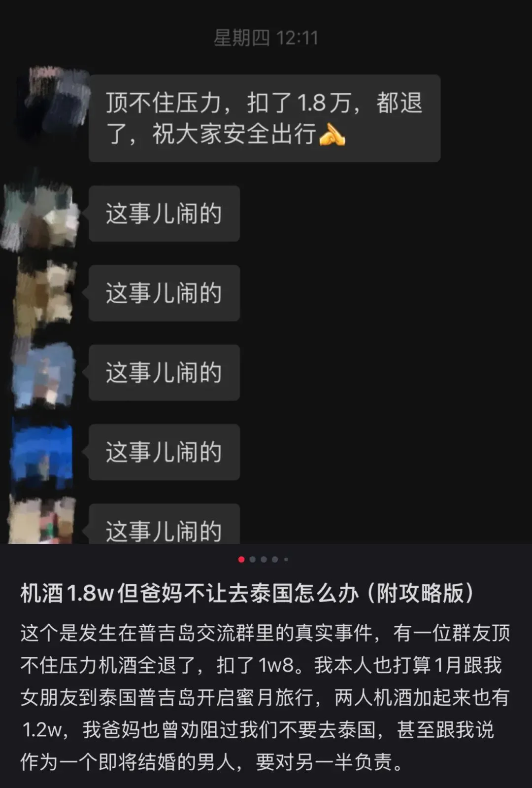 在某普吉島旅行交流羣中,有網友稱,自己“頂不住壓力”,取消了全部泰國的行程。