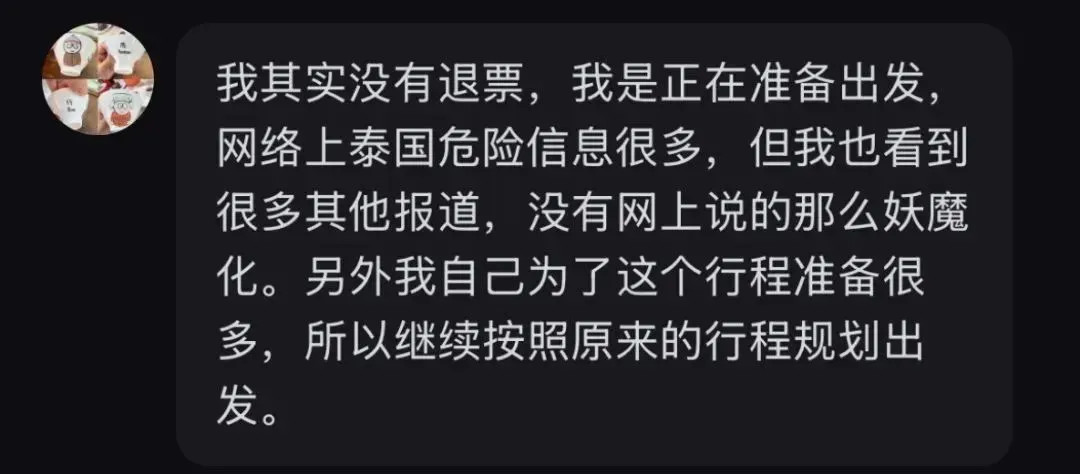 當然,互聯網平台上也有不少人,在經過了一段時間的“離泰冷靜期”之後,依舊選擇出行。