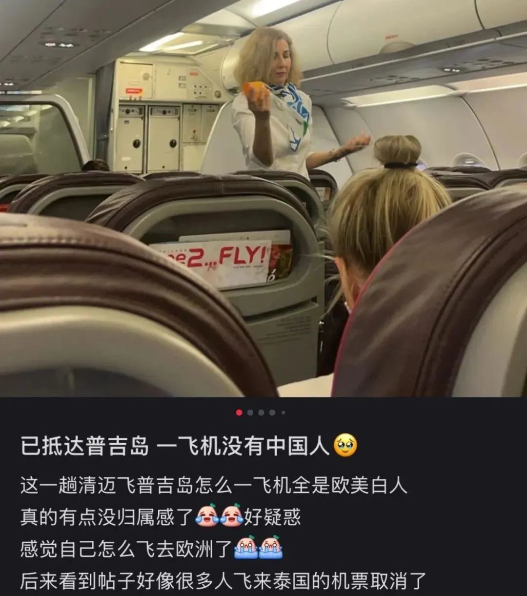 一位飛往泰國普吉島的網友,在飛機上沒看到任何中國同胞,還以為自己到了歐洲。