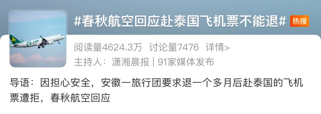 兩天前,網絡社交平台上,“泰國飛機沒人”的詞條,突然出現在搜索欄中。