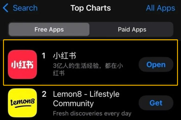 隨着大量美國“難民”的湧入,硬生生將小紅書送上了美區軟件下載排行榜榜首。