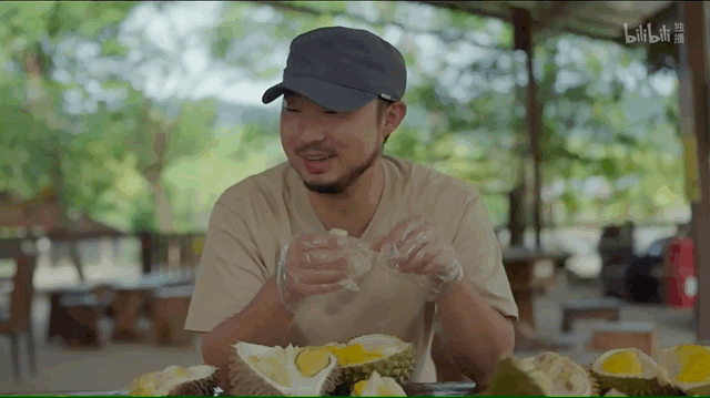 小亮的面前擺滿了各式各樣的榴槤:純野生的山芭榴槤,號稱“榴槤界愛馬仕”的貓山王榴槤,本地摯愛的紅蝦榴槤。