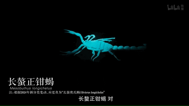 因而,在紫外線燈的照射下,長螯正鉗蠍散發着熒光。