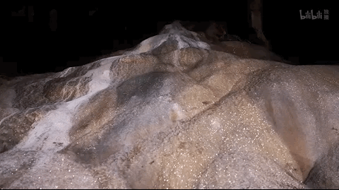 鐘乳石表面的晶體閃爍着金沙般的光芒,猶如浩瀚星河。