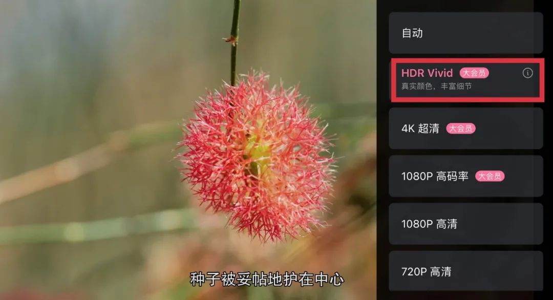 相比於1080P等普通畫質,HDR Vivid版本色彩更豔麗飽滿,細節更細膩清晰。