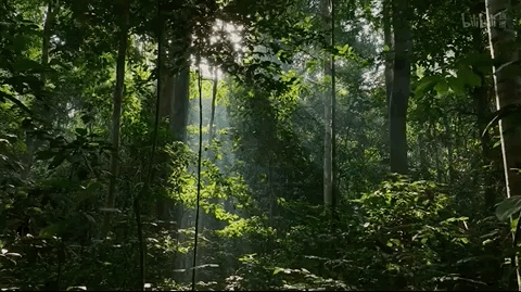 第二集中,熱帶雨林經常出現陽光穿透雨林,灑落到樹葉、地面枯葉的情形。