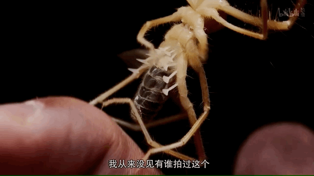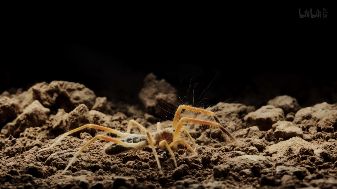 第三集中,為了捕捉到長螯正鉗蠍的身影,科學家打着紫外線燈尋找。