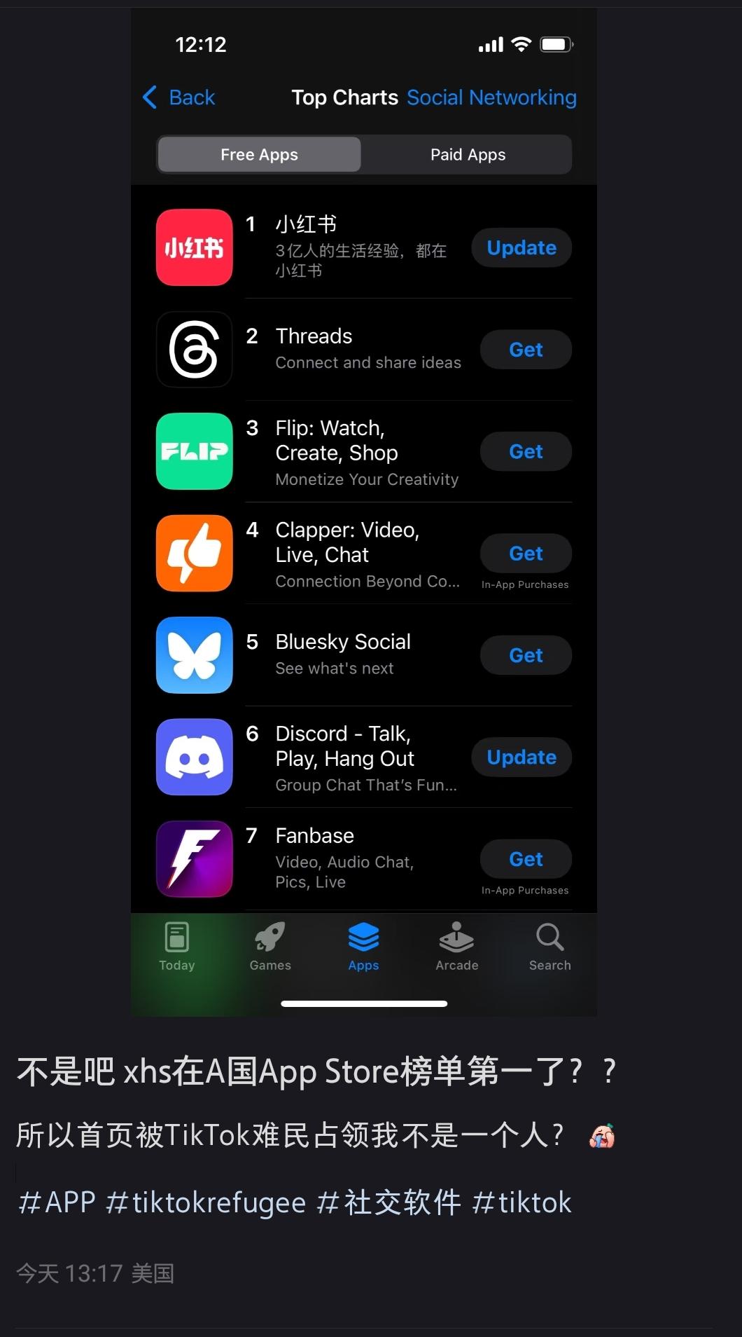 誰也沒想到,tiktok被禁傳聞倒是讓另外一款中國app小紅書走紅了,最近2天,有超過50萬美國人下載了這款中國社交軟件,讓其登上美國app商店榜首。
