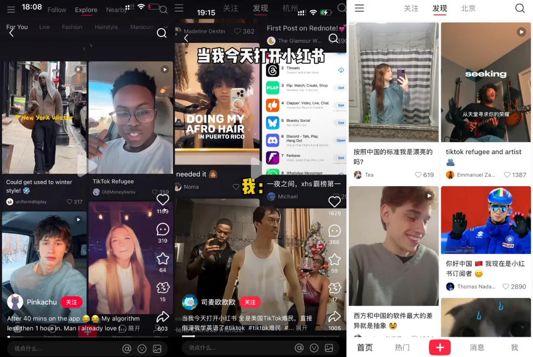 要知道小紅書曾六次出海,推出海外版APP,均無甚成效。現在不用出海了,海自己來了。洋抖難民湧進的小紅書,正是服務咱們中國主場用户的原版APP。外國人使用小紅書其實是有很大門檻的,因為界面不熟悉,很多人甚至不會把系統切換成英文語言,靠翻譯軟件艱難地使用着小紅書。