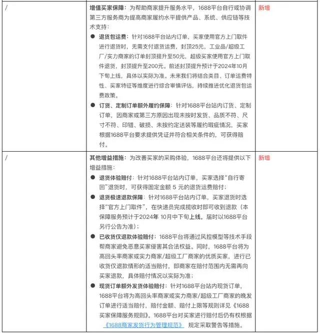 事件九:1688發佈《買家保障服務升級公告》 調整“僅退款”規則