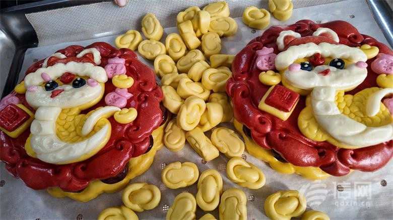 任曉升製作的《我愛青島》系列花餑餑作品。 (來源:任曉升)從一個人做花餑餑到帶着花餑餑走出去 小作坊裏有着大夢想