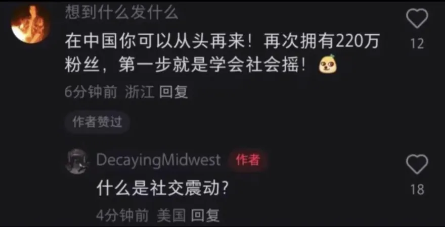翻譯器也很難理解社會搖的含義,給翻譯成了社交震動…也合理。你要我翻譯社會搖,我也頂多翻譯成齊舞弄清影…