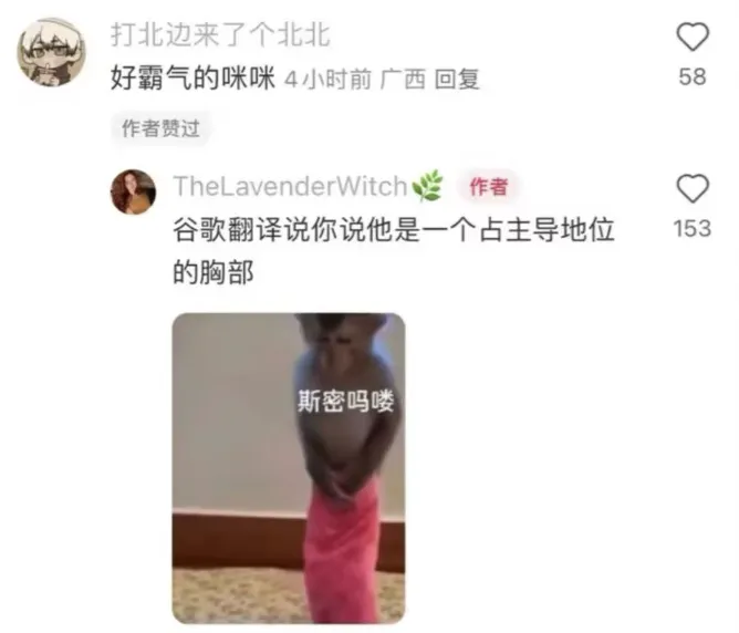 再比如大家熱情稱讚貓貓,但谷歌翻譯的理解顯然有點偏差…