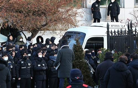 **▲**1月15日早些時候,在首爾龍山區的總統官邸,韓國公調處和警方正在執行對總統尹錫悦的逮捕令。(圖源:韓媒)