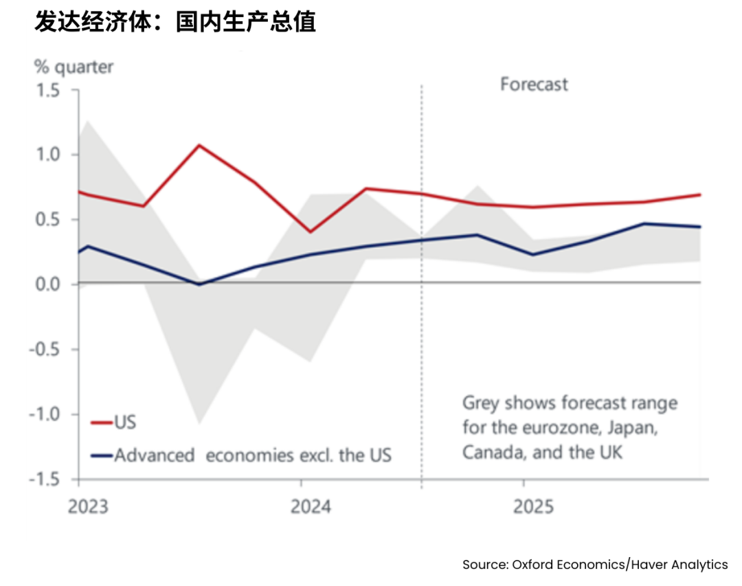 因此,儘管我們對美國 2025 年GDP增長的預測與其他發達經濟體之間已經存在明顯差距,但這種差距仍然有不斷擴大的風險。