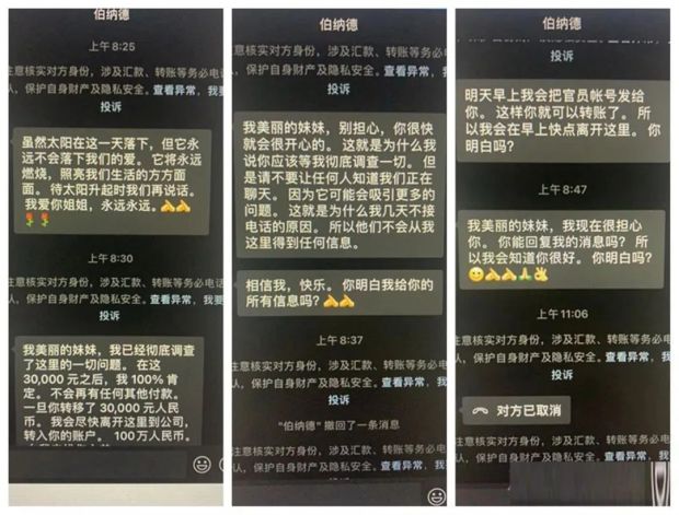2020年4月,浙江省金華市的徐女士在網上結識了一位“英國網友”,對方自稱“布魯斯”,今年58歲,是一位船長。對方經常給徐女士發送自己的“生活照”、“工作照”,兩人的感情迅速升温。