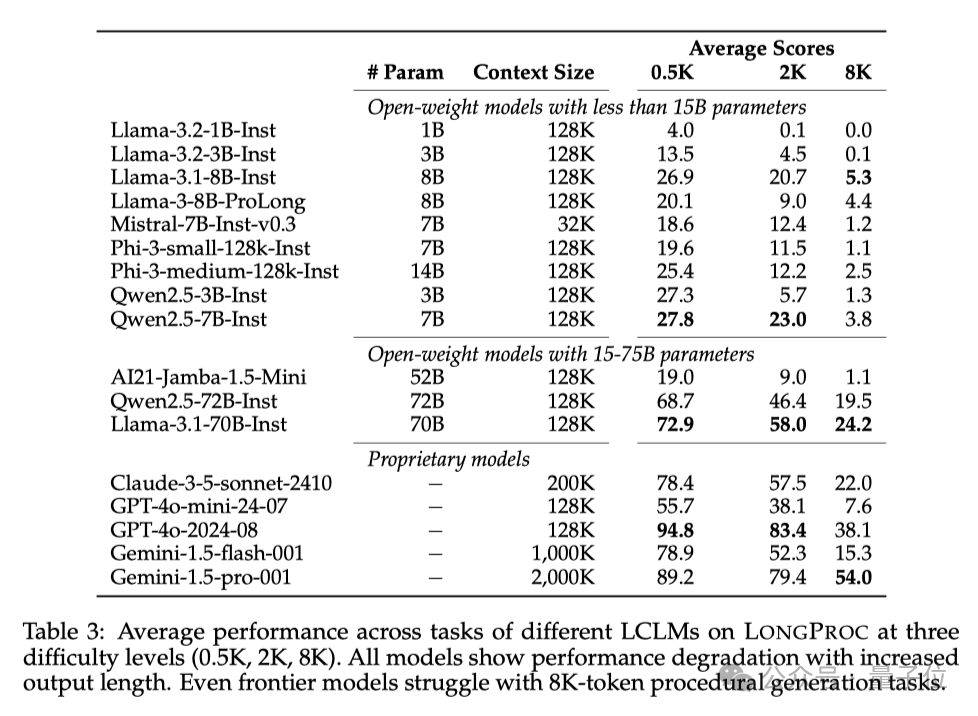 即使是GPT-4o這種前沿模型,在8K tokens的輸出任務上也難以保持穩健的表現。