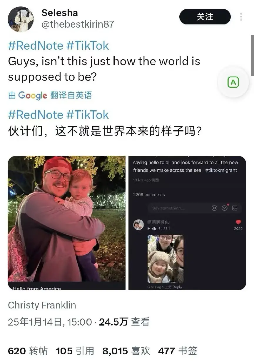 tiktok難民避難是一次偶然,但從歷史的發展角度來説,它不發生在小紅書上,也會發生在別的App上。它不發生在今天,也會發生在明天。縱使它影響的範圍遠遠提不到人類文明進程的高度,但卻絕對算得上是逆全球化中的昂揚消息——再堅固的疆界和意識形態的摩擦,都擋不住生活的融合與交錯。