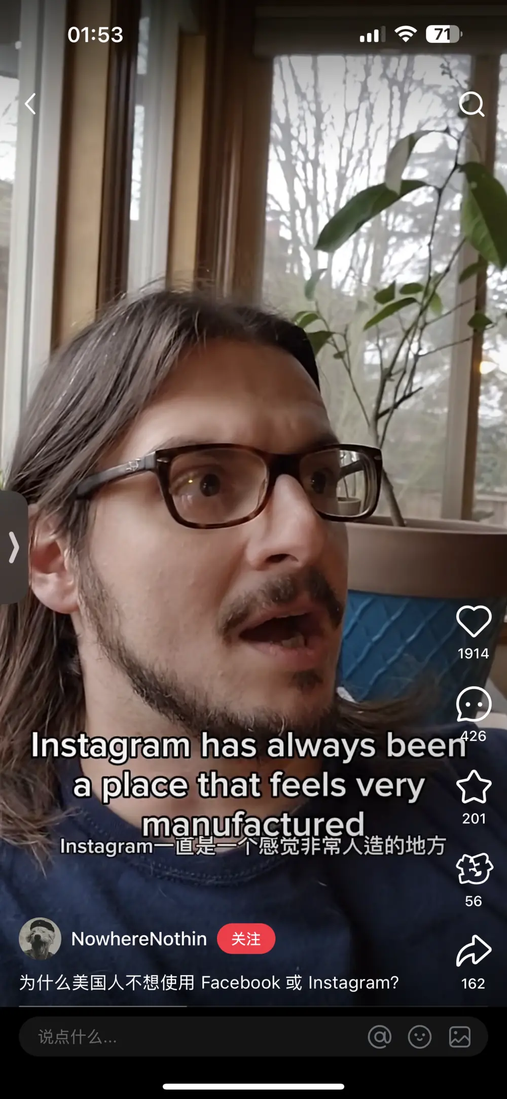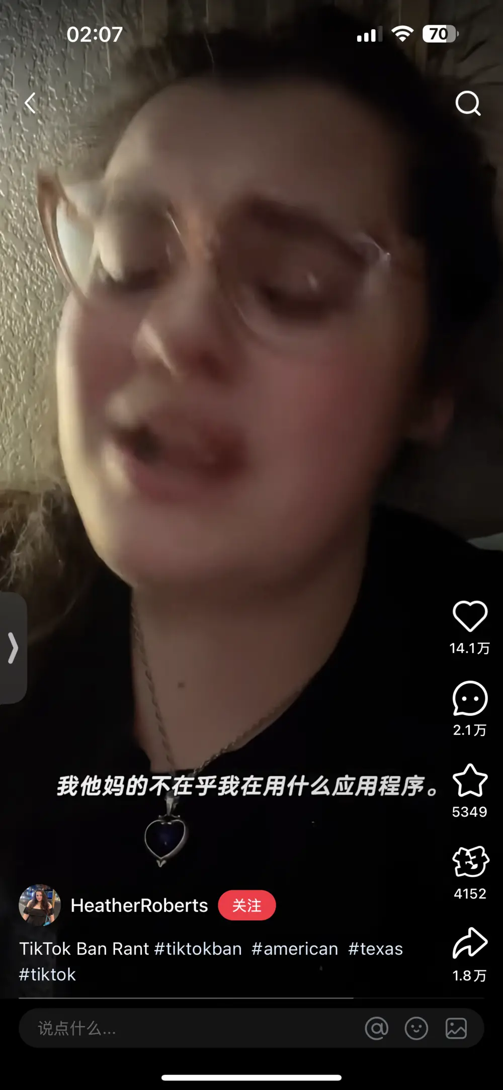 “美國政府説tiktok禁令是國家安全範疇,但如果真是這個問題,那為什麼不禁止所有的中國App呢?大家喜歡tiktok是因為小人物也可以説自己想説的,我一點不覺得來小紅書這件事離譜,這種遠渡重洋不需要聽任何人話的做法本身就很美國,現在政府想要控制人們,所以我們來到小紅書。”