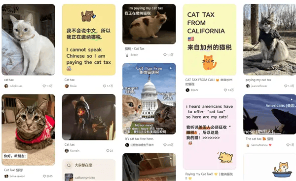 當前,“TikTok難民”話題下已有3.7億閲讀量和791.2萬討論。有人在其中看到了文化交流的機遇和商機,“3美元幫起中文名”,有直播機構嘗試幫助海外博主運營;中美民間自發“對賬”日常開銷和醫保,“1美元在中國能買多少東西”;有人在裏面玩梗,改作業,“新移民們”被要求交“貓税”即曬出自己的可愛貓貓,中國網友戲稱“等我給你發邀請碼再下拼多多”。