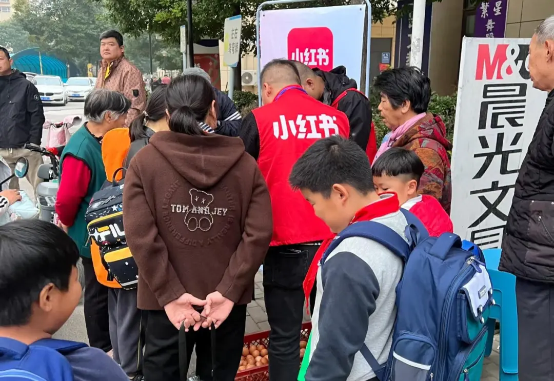 用户規模增速放緩的小紅書,一方面開始在虎撲等“直男社區”打廣告,吸引男性用户,一面在2024年開始了更接地氣的推廣行為,通過在線下送雞蛋等方式,吸引中老年用户羣體。