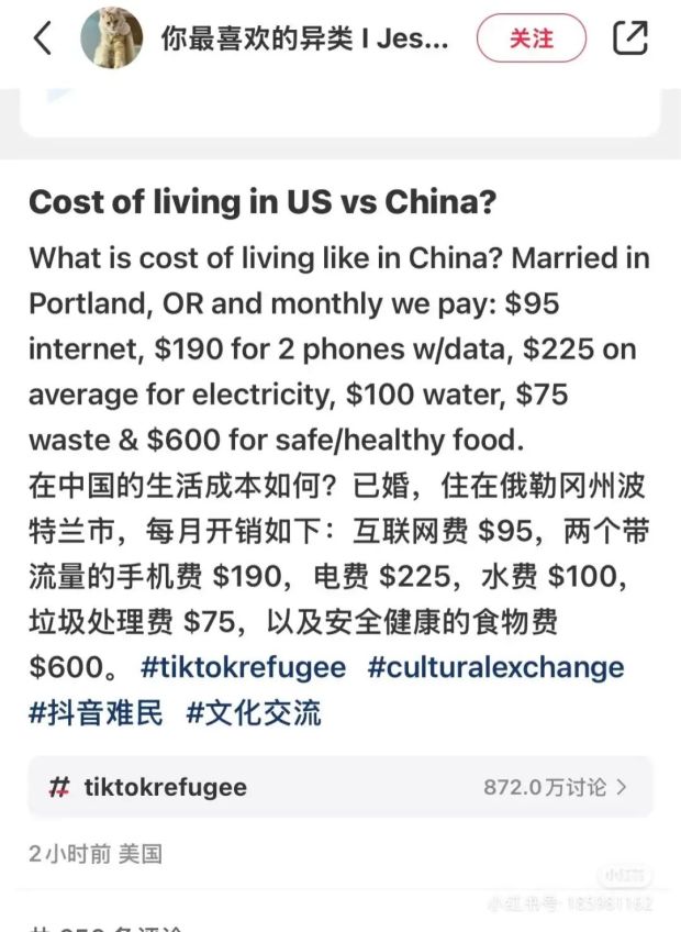 對賬水電費,美國大概是中國10倍左右;對賬醫療成本,那簡直是百倍千倍,雖然能夠上小紅書的美國人都不是窮人,起碼都有個幾千美元的月收入,但他們掙美元花美元啊……在得知中國大學只需要幾千人民幣學費、中國做個大手術只需要幾萬人民幣、叫個救護車甚至是免費的時候,美國人也被震撼到了。