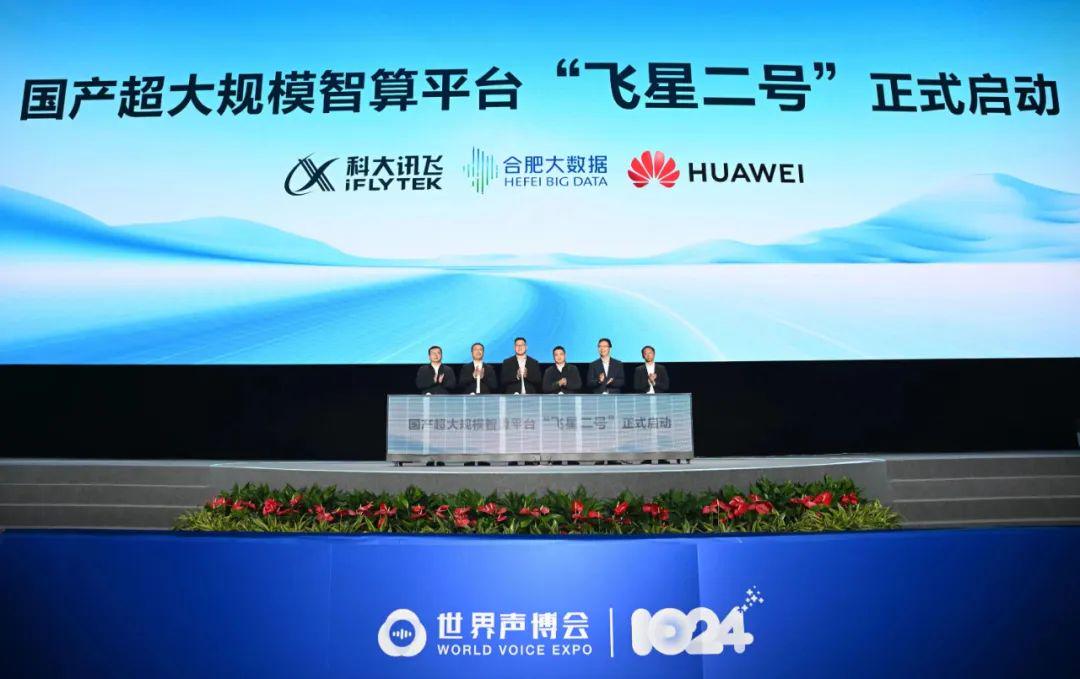 除了在技術上的“技術頂天”,訊飛星火還是首個基於“全國產算力”底座打造的大模型產品,實現了人工智能領域真正的自主可控。2023年10月24日,科大訊飛聯合華為發佈了國內首個全國產算力平台“飛星一號”,常態化支持萬億參數的大模型訓練;2024年,科大訊飛又與華為、合肥市大數據資產運營有限公司三方聯合打造了國產超大規模智算平台“飛星二號”,帶來新模型、新算法的適配和智算集羣規模的再次躍遷。
