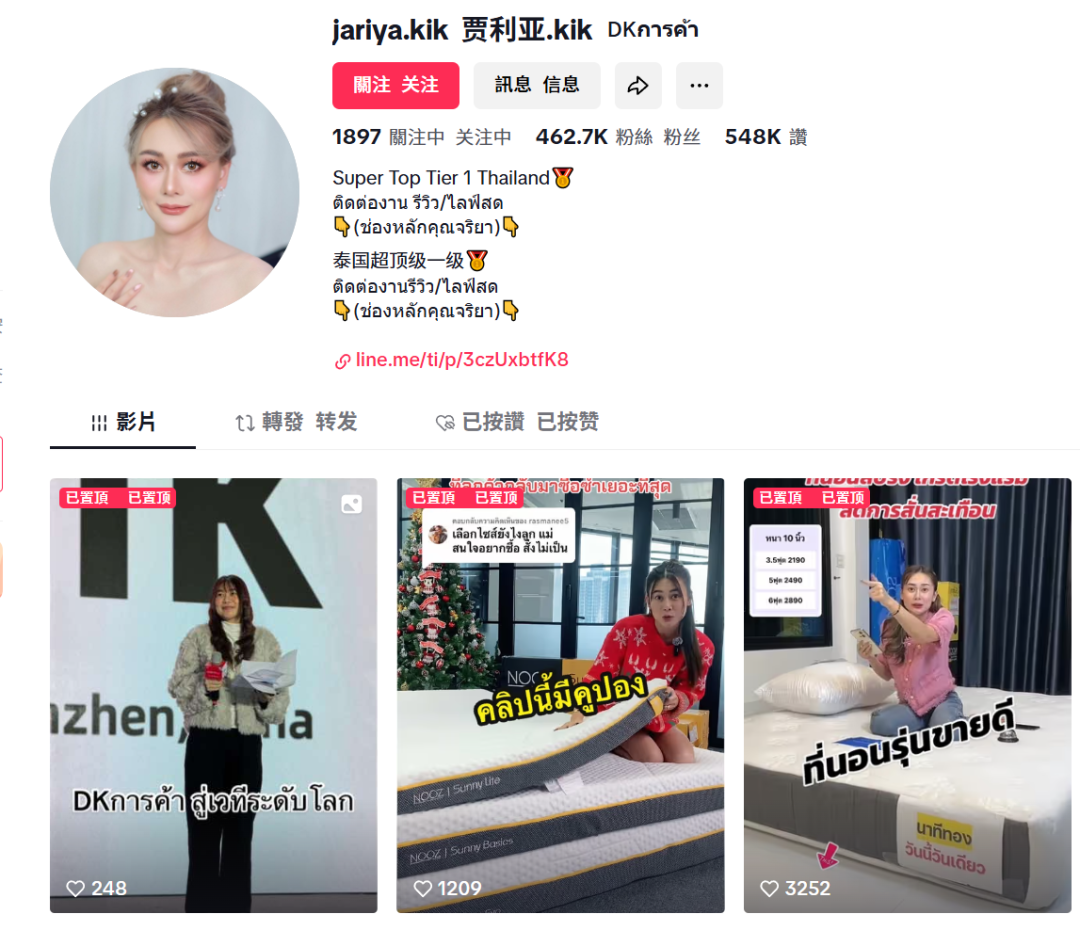 人一多,直播間就得來活才有人看。熱門的直播模式一天一個樣,在泰國做到直播帶貨榜一的主播 @jariya.kik 坦言,很多直播模式他們還沒有熟悉,就已經過時了。為了競爭,她的賬號現在每場都要直播 6-18 個小時。