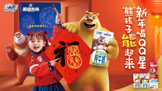 此外,伊利旗下的安慕希選擇了《唐探》,QQ星則與動畫《熊出沒》展開了“二搭”,都在助推作品宣傳。