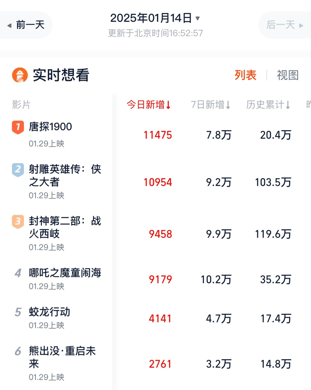 像《封神》這樣,粉絲聲量較高的系列作品還有《唐探》和《射鵰》。