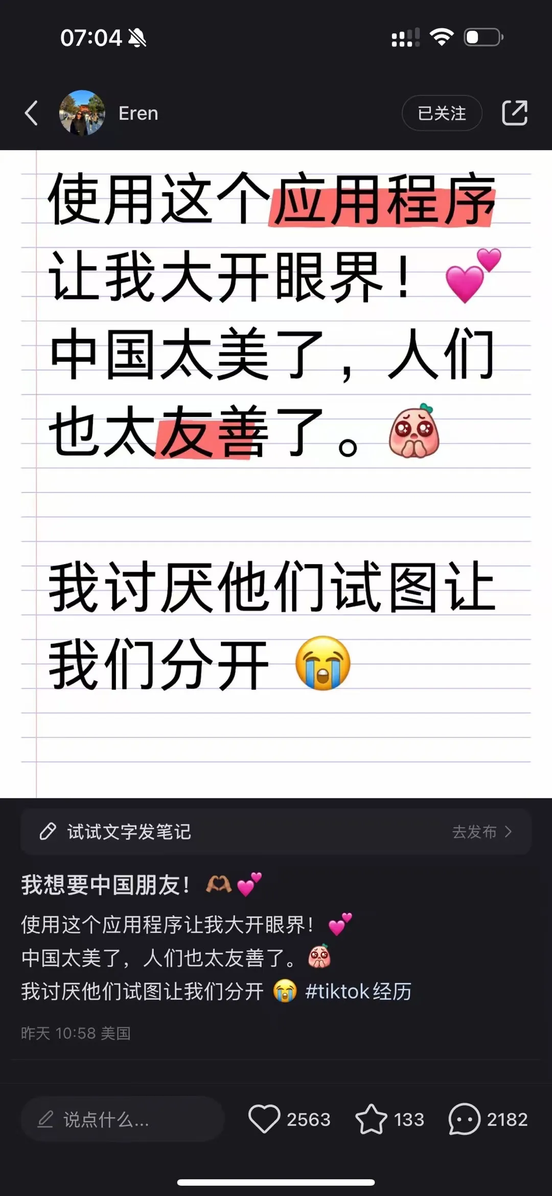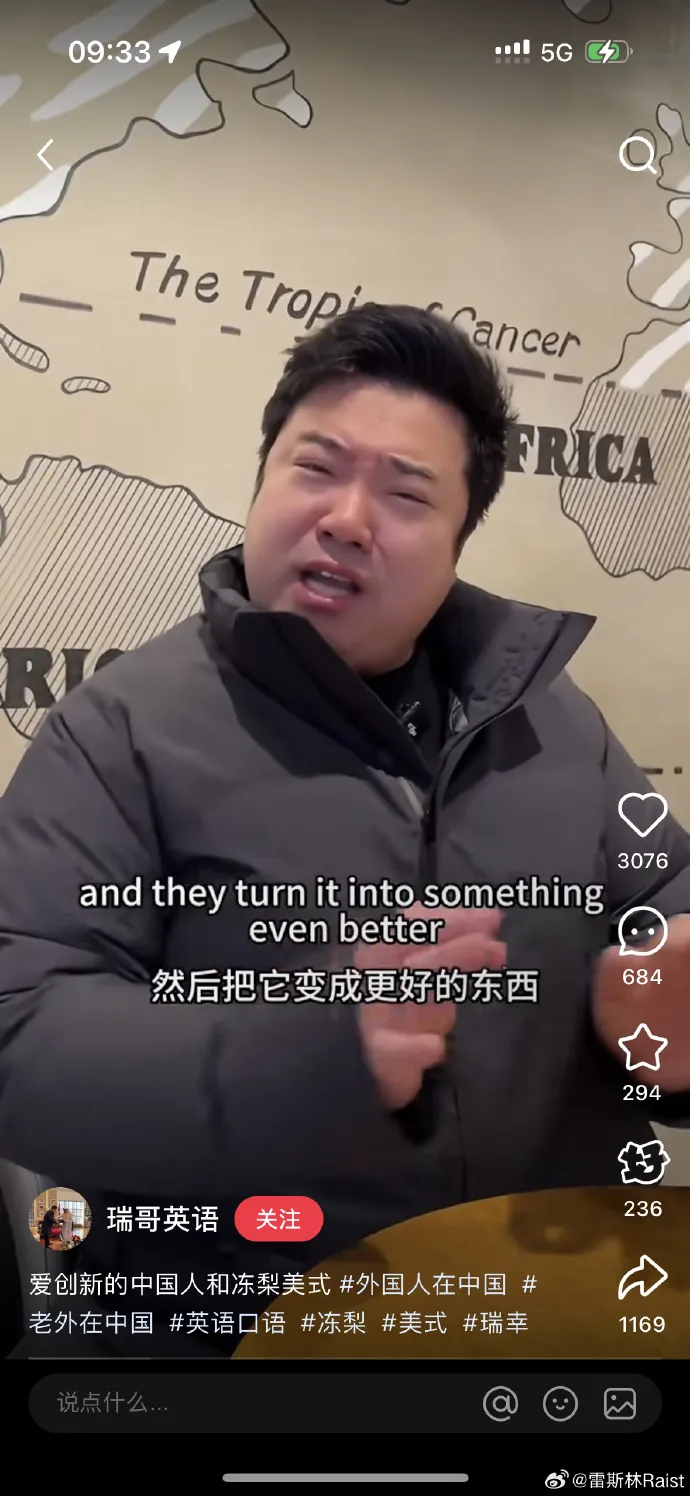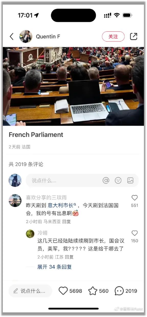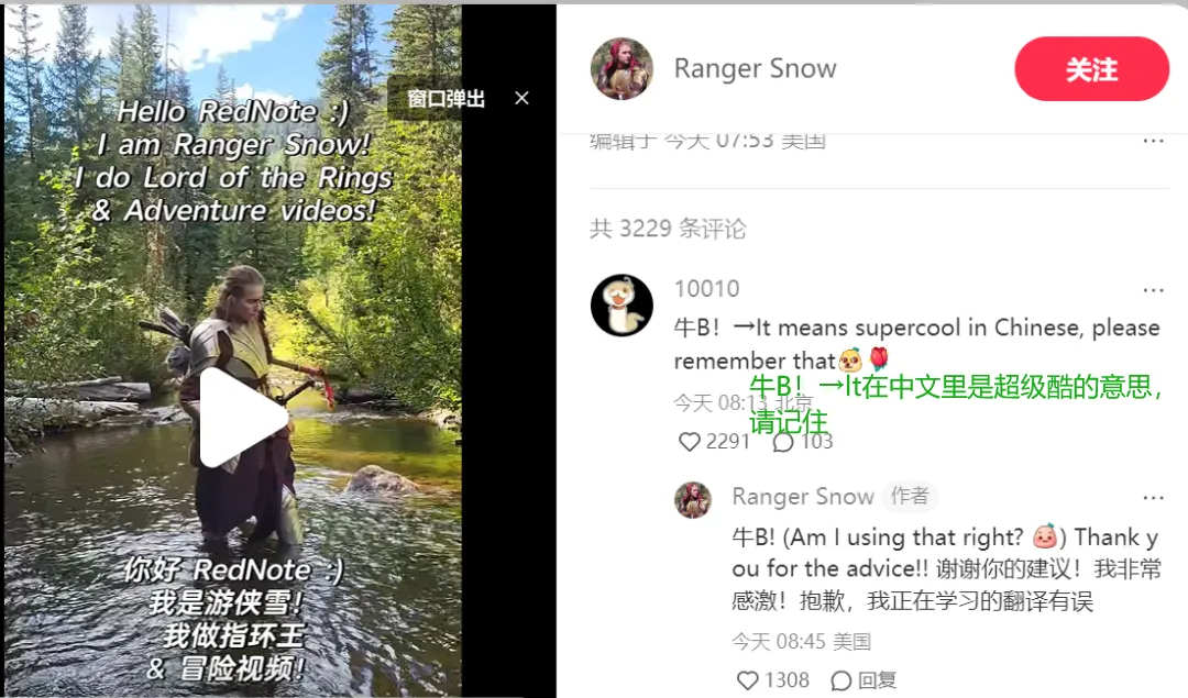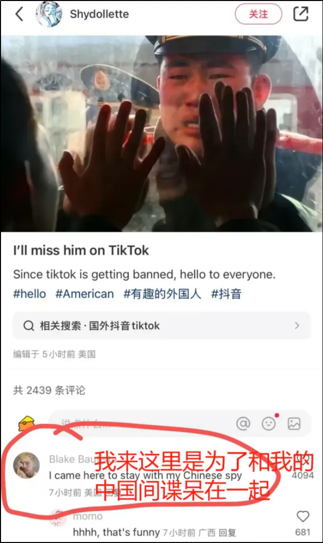 然後最近小紅書來了好多美國人,説他們刷到的第一個視頻就是這個。