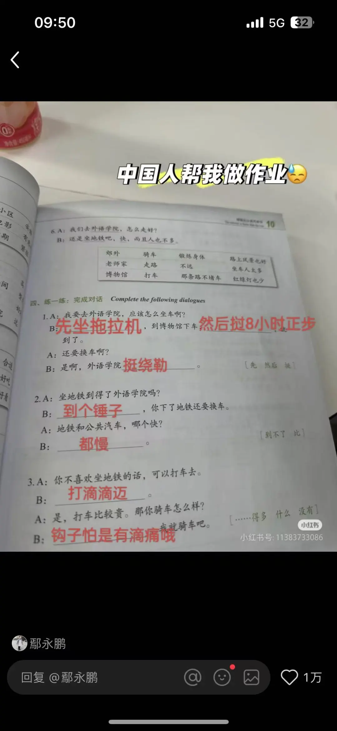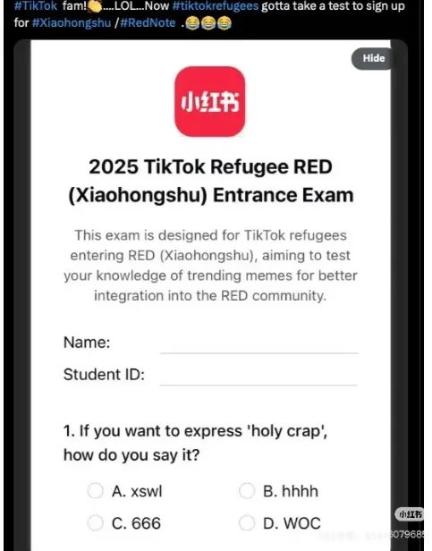 他們學完以後,跑回自己的平台出了一套題,説做對了才能去小紅書玩。