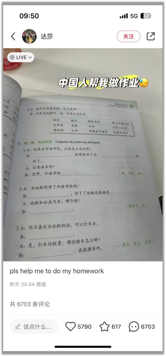 而且不止在小紅書上他們表示要學中文,回去他們自己的平台,他們也説自己想學中文。