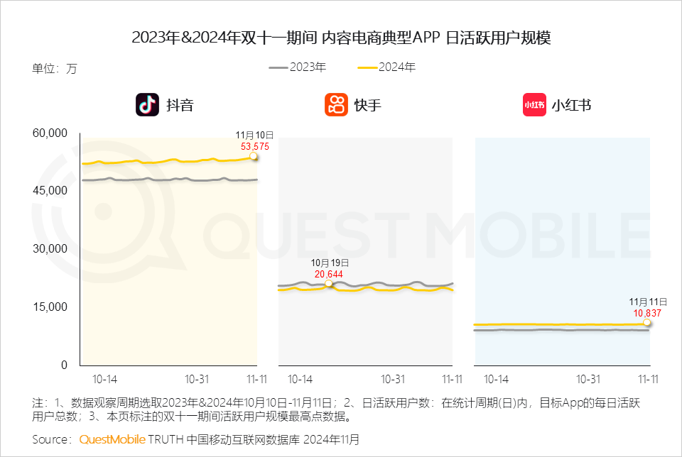 但從行業整體的數據來看,貌似又沒有那麼“暗”。以最近的大促雙11為例,第三平台星圖數據監測顯示,2024年雙11期間(各平台大促起始日期至2024年11月11日23:59),綜合電商平台、直播電商平台累積銷售額為1.44萬億元,同比增長26.6%。其中,直播電商銷售額為3325億元,同比增長54.6%。