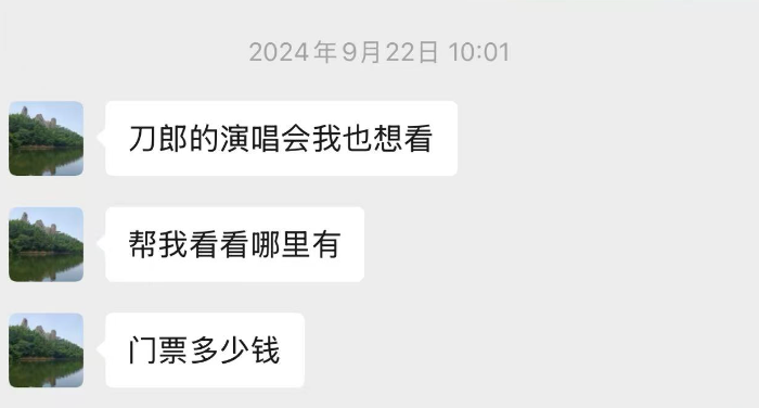 9月初,呂洋收到母親的微信,讓他幫自己搶一張刀郎澳門演唱會的門票。