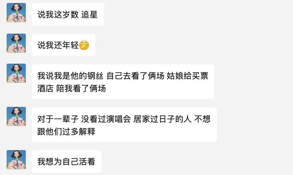偶爾也有人當面對她“評頭論足”:“你都一把年紀了,還追星”。
