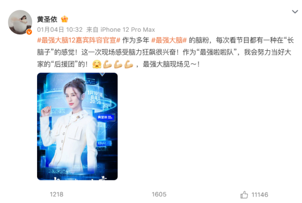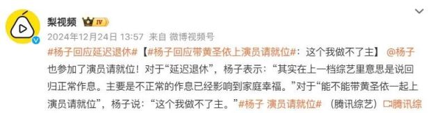 楊子去演員請就位,黃聖依去最強大腦,參加跨年晚會。