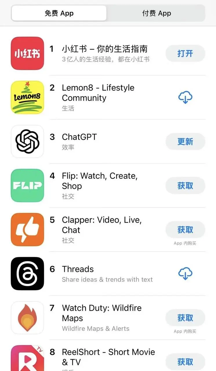 外國人入侵中國APP,甚至讓小紅書一度登上iOS美區前幾名,一眾英文APP中驚現“中國紅”。