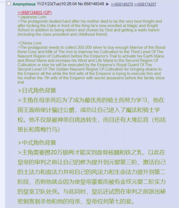 當然,通過WuxiaWorld等海外網文平台的傳播,中國網文在海外如今也形成了一些典型認知,圖為海外論壇對比中日網文風格,謎之聲翻譯
