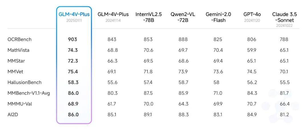 3、升級版的GLM-4V-Plus,覇榜多個公開榜單