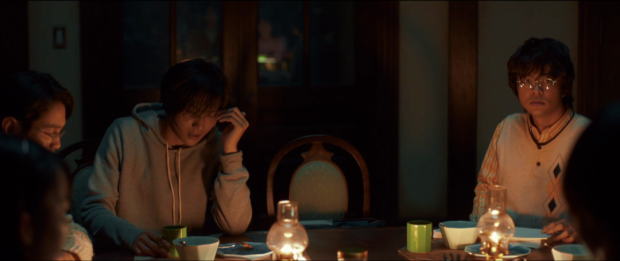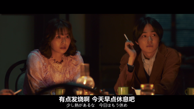 十角館的光線昏暗,埃勒裏他們的臉上都有戲劇化的打光,起強調作用。