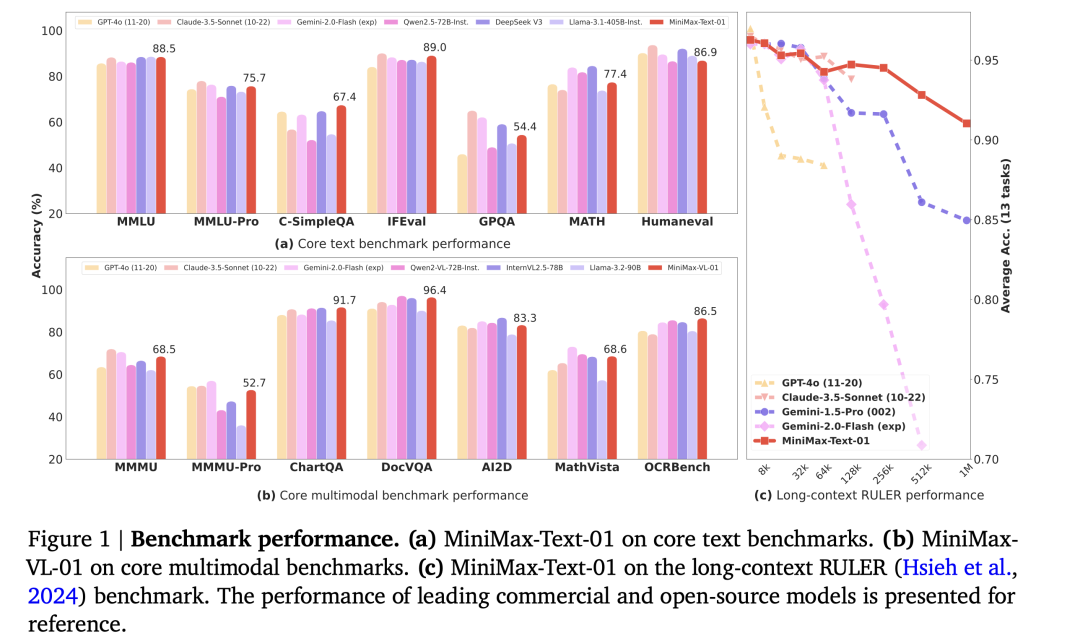 MiniMax-01 系列模型可與頂級閉源模型相媲美 | 圖片來源:MiniMax 論文