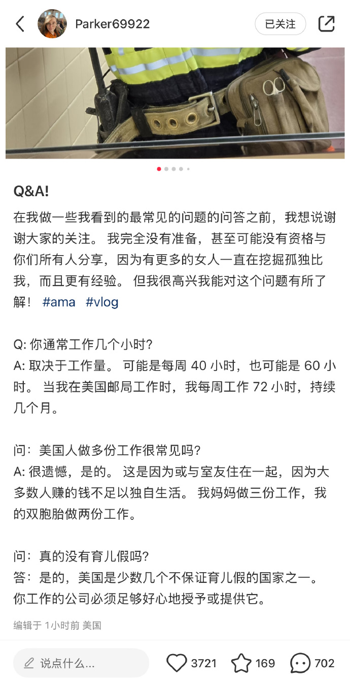 🔹“很遺憾,美國人做多份工作很常見,這是因為或與室友住在一起,因為大多數人賺的錢不足以獨自生活。 我媽媽做三份工作,我的雙胞胎做兩份工作。”